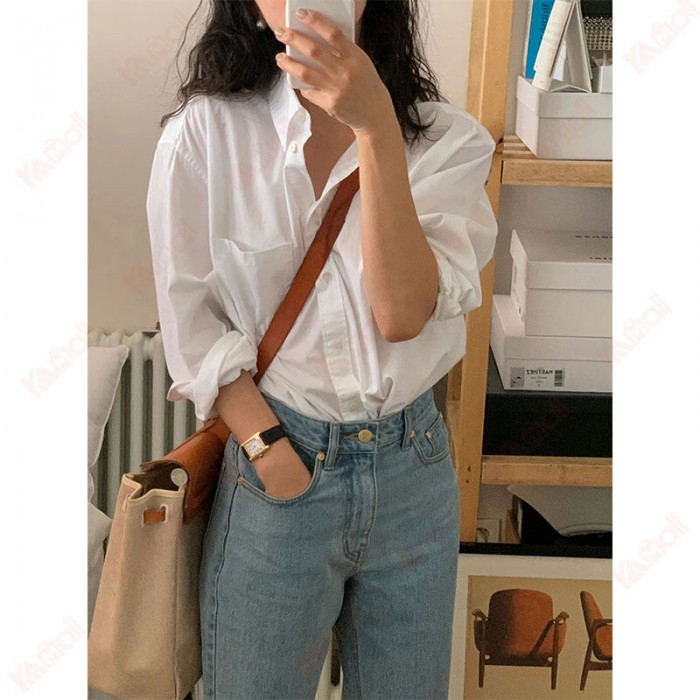 White solid color long sleeve shirts of new style, they are made of cotton, it it comfortable for people to wear the shirts. Good gifts for young girls at the age of 25-29, the size is average.