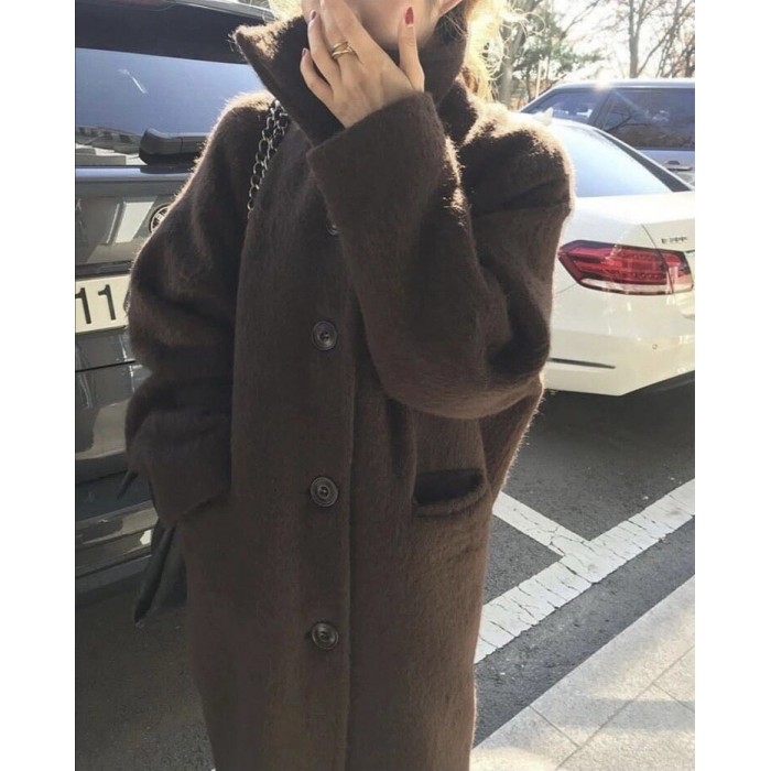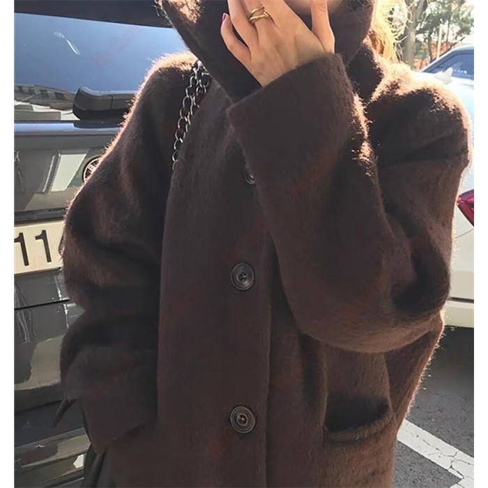 Womens Loose Coats Fuzzy Jacket Brown Thickened Tweed Jacket Wool Coats Kameymall