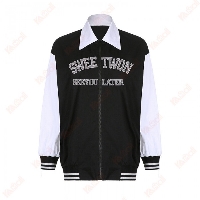Brand Name: KameymallModel number: HC18754Sleeve: Raglan sleevesClothing placket: zipperThickness: RegularCollar Type: LapelFabric name: Woven fabricMain fabric composition: cottonPattern: LettersProduct Category: JacketEdition type: LooseInventory type: whole orderProcess: printing/dyeingStyle: leisureClothing length: ordinary (50cm<clothing length≤65cm)Sleeve Length: Long SleeveColor: BlackSize:S,M,LSuitable age: 18-24 years oldClothing style: Europe and the United StatesStyle Type: Urban Casual