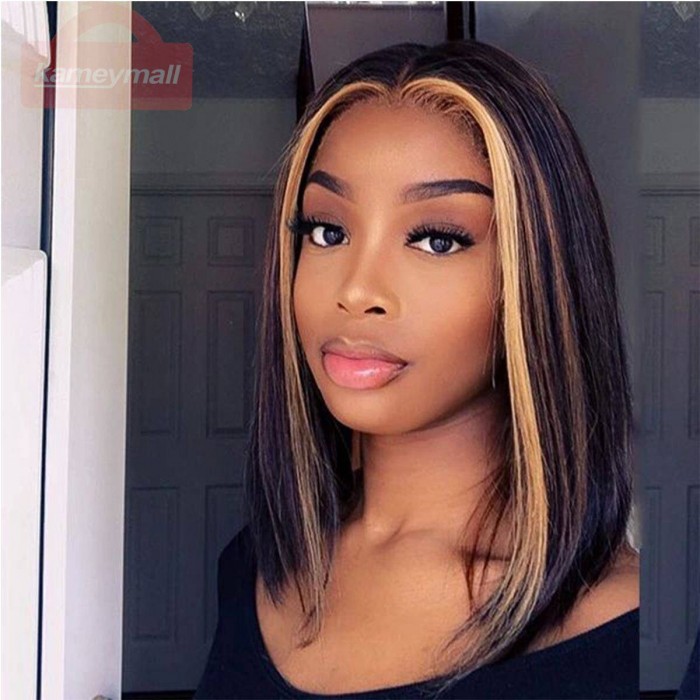 Hair Wigs Cheap Real Hair Extensions Honey Blonde Highlight Short Bob Straight Hair