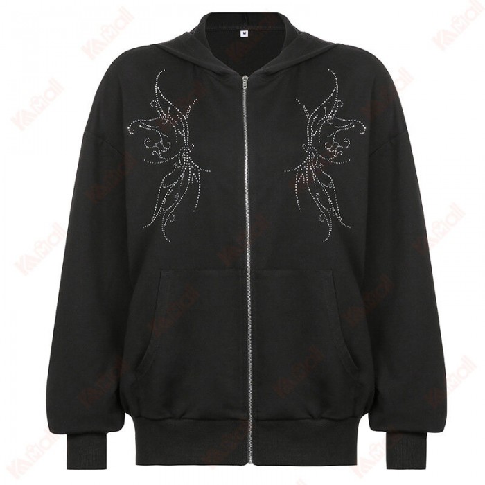 Fashionable Black Loose Butterfly Printed Hoody Cozy Best Selling