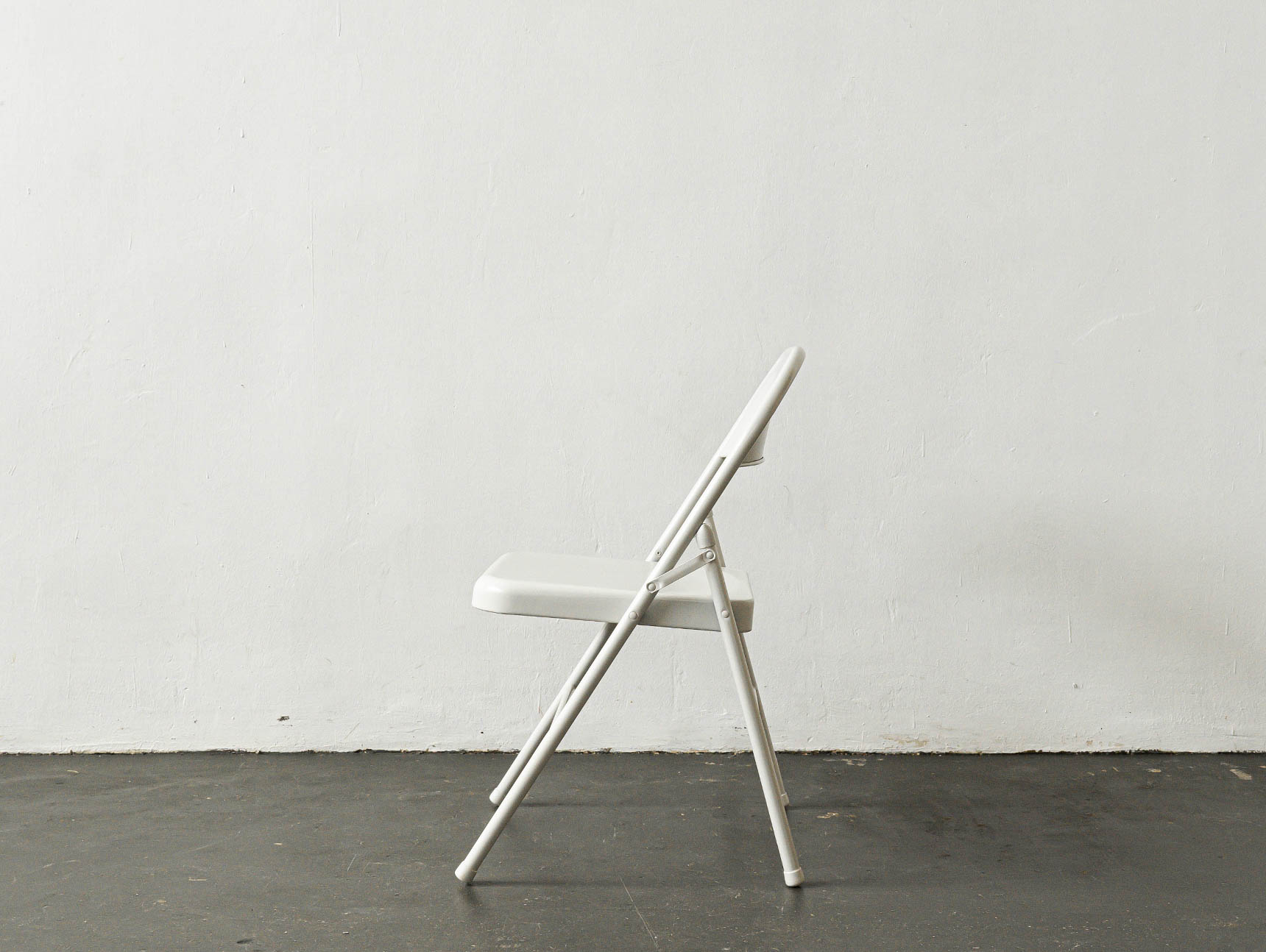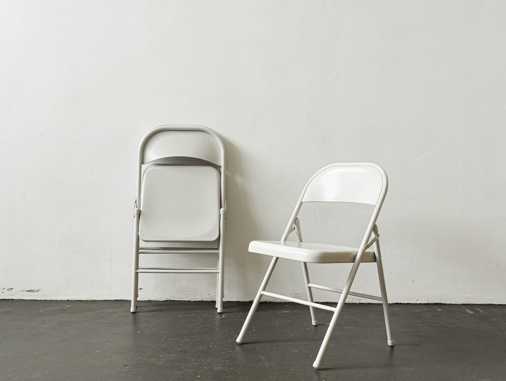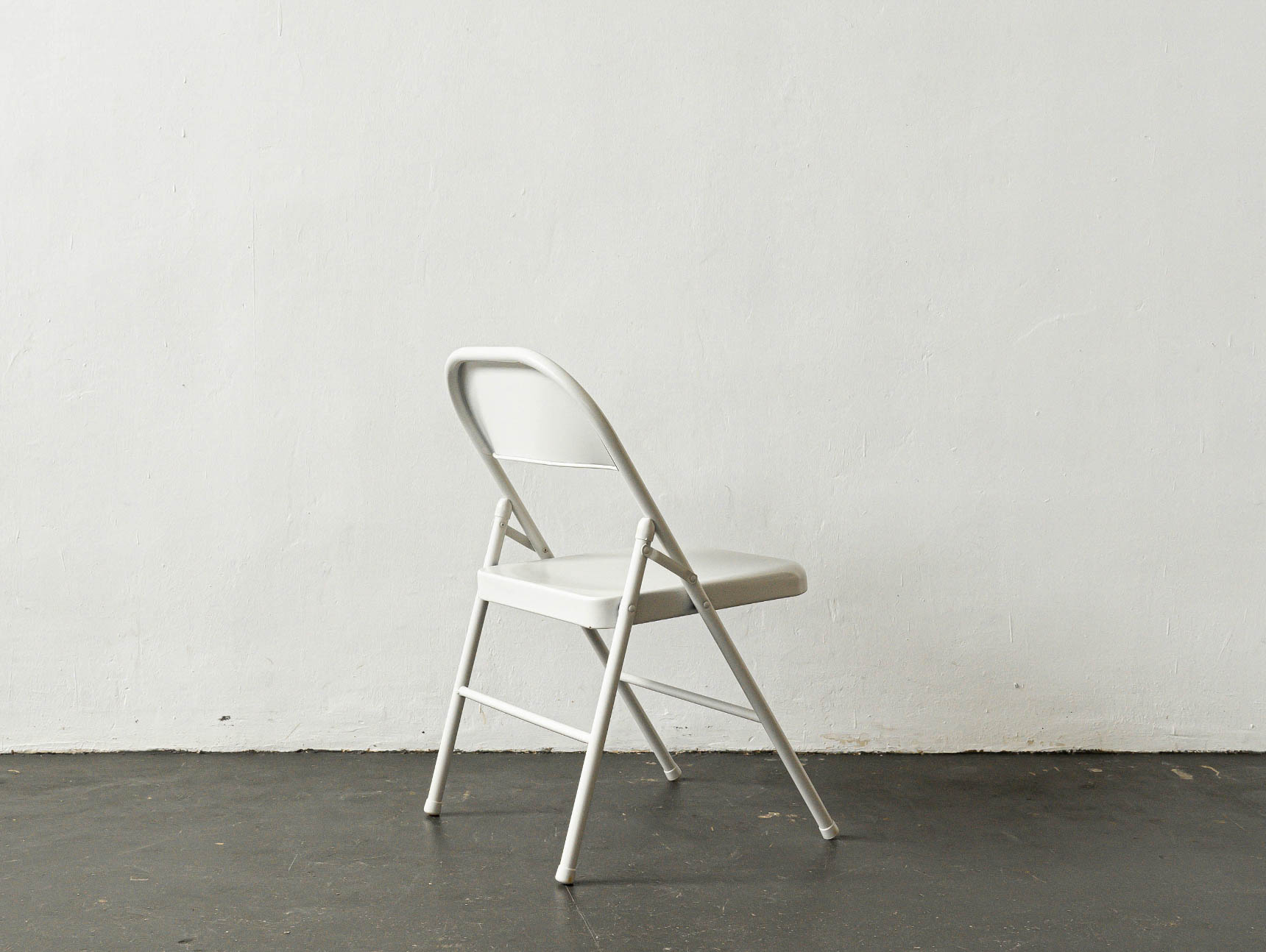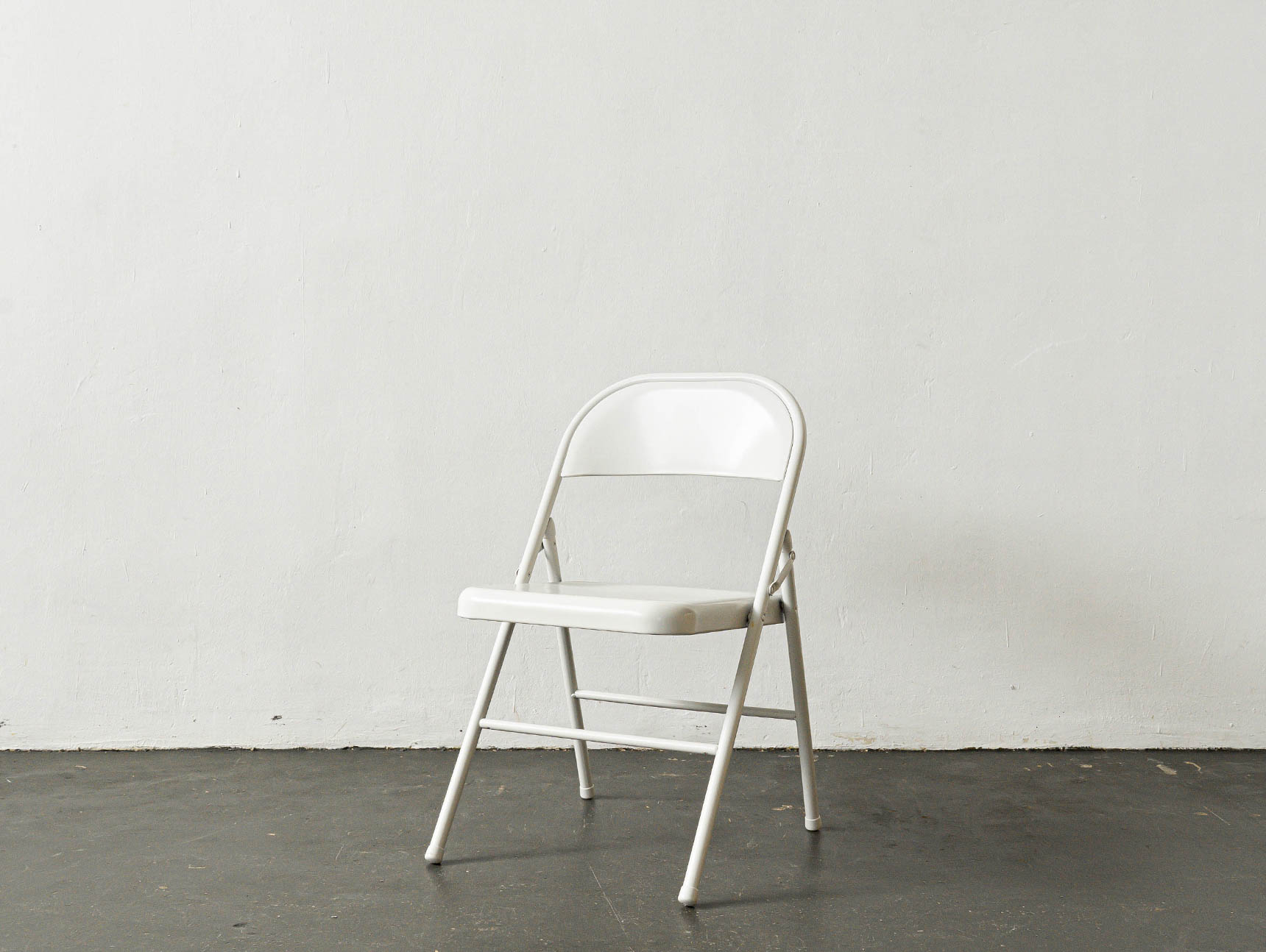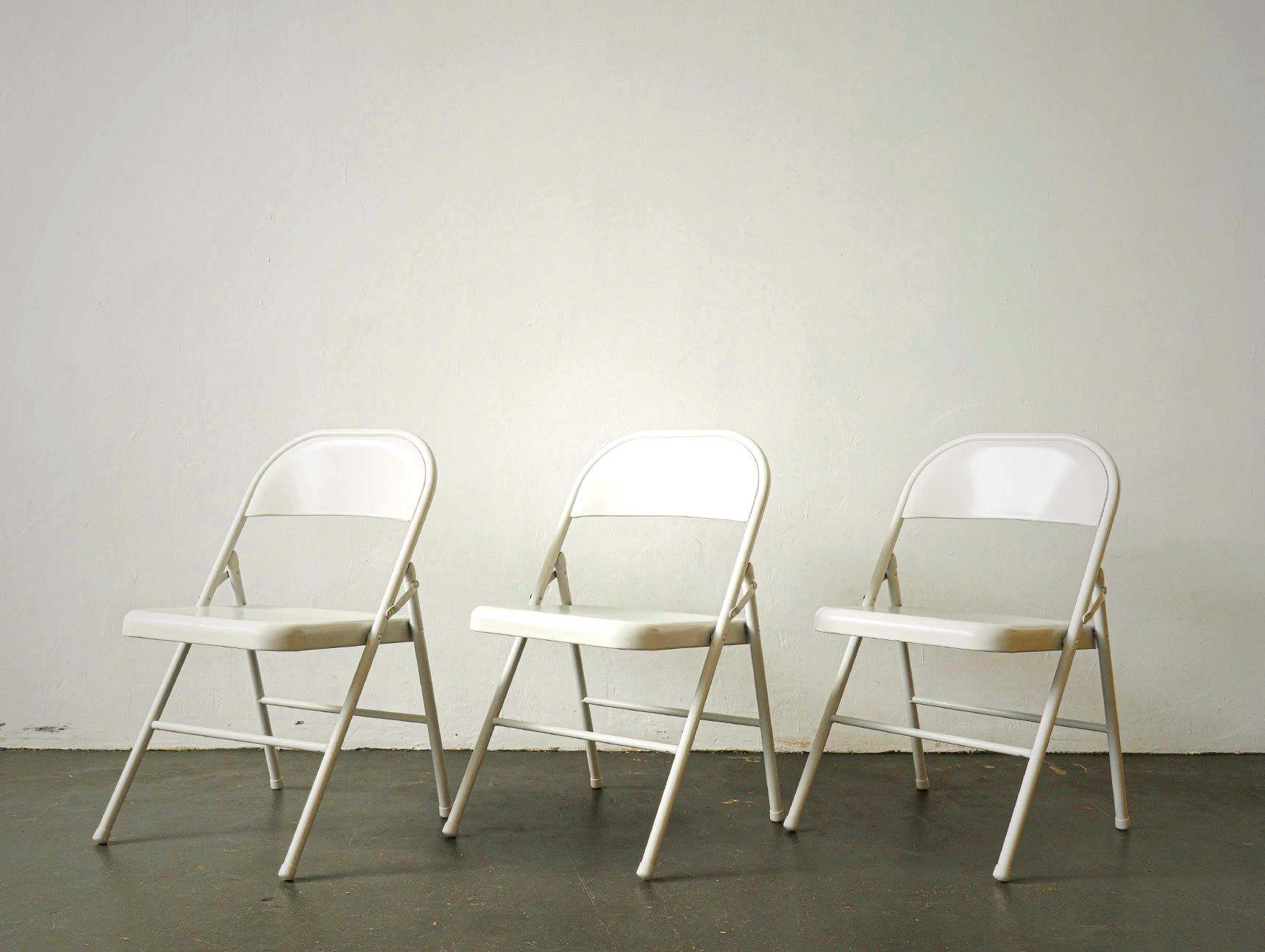 Discover the iconic MECO Folding Chairs, a family-owned American brand since 1959. Originally crafted in 1971 to complement their renowned barbecue grills, these steel folding chairs became a staple in American households. Made in the USA with premium full hard-temper tubular steel and featuring a triple-welded rear leg brace for maximum stability and strength. These vintage off-white folding chairs are perfect for both indoor and outdoor gatherings. Each chair measures L46 x D49 x H76 x SH43 cm and is sold individually. Condition: Mint. Sourced from Shizuoka.