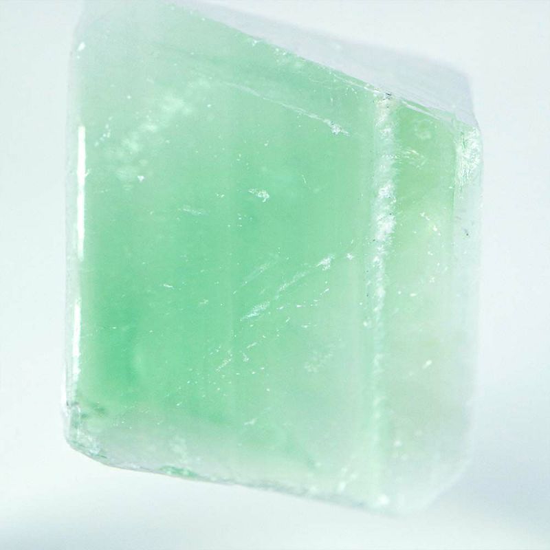 Fluorite has the property of emitting light and scattering when heated, which is how it got its name. Depending on its place of origin, some types fluoresce when exposed to ultraviolet light, such as sunlight. It also exhibits a clear property of cleavage, breaking easily in specific directions; when broken properly, it can form an octahedron.
