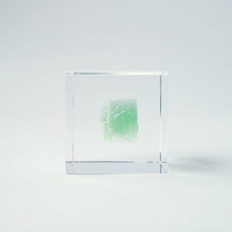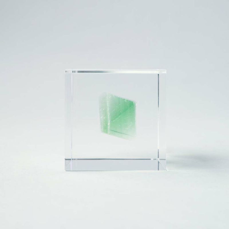 Sola Cubes, crafted by Usage No Nedoko in Kyoto, embody this philosophy. These cubes combine traditional Japanese values of reverence for nature and appreciation of overlooked elements. Encased in hand-polished crystal clear acrylic resin, each cube holds a preserved leaf, seed, or flower, offering a meditative glimpse into nature’s beauty—similar to Kuramata’s “Miss Blanche,” but using real organic materials.