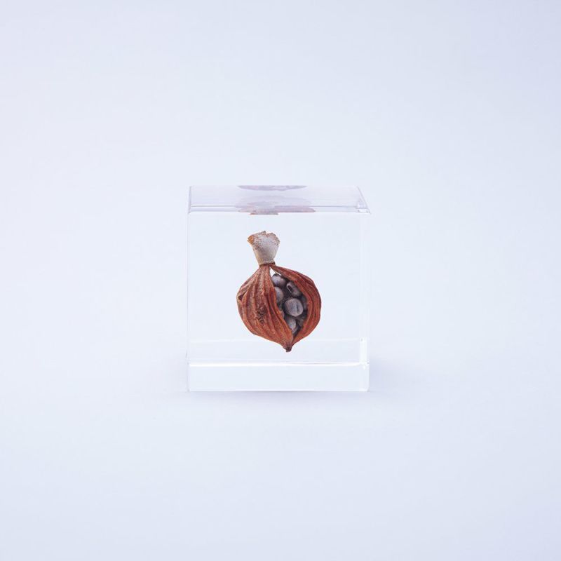 Discover the Sola Cube – Shell Ginger, a handcrafted acrylic resin art piece from Kyoto by Usage No Nedoko. Inspired by Shiro Kuramata’s design philosophy, each cube encapsulates real dried botanicals like Shell Ginger seeds, offering a meditative glimpse into nature’s fleeting beauty. These cubes celebrate traditional Japanese reverence for nature and are perfect for collectors and design enthusiasts.