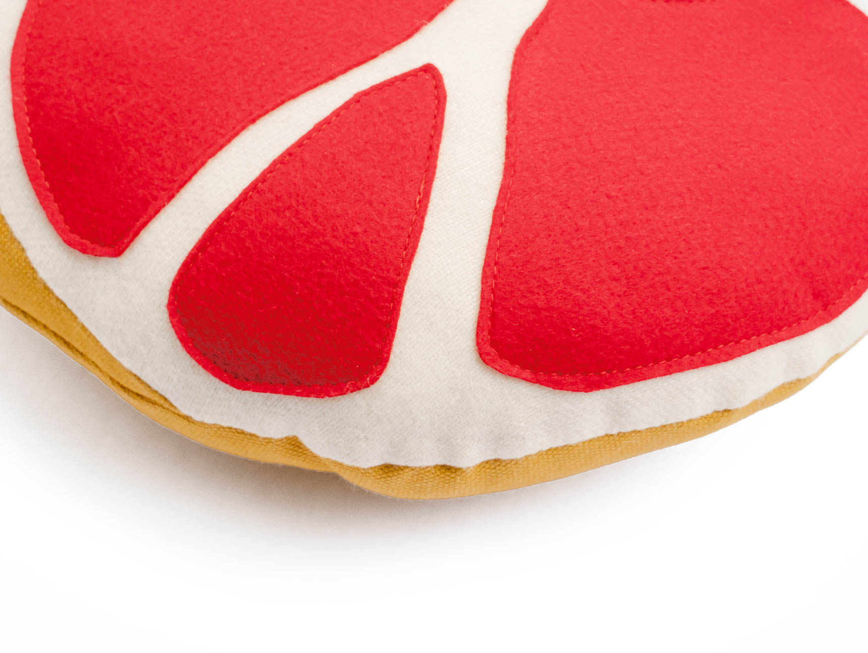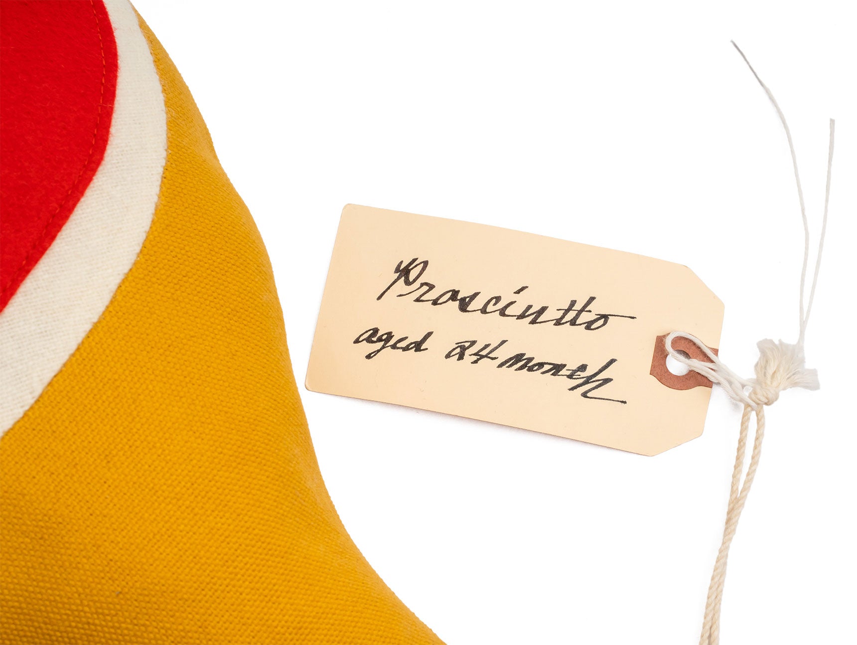 This decorative prosciutto sausage is a unique addition to any home. Crafted from polyester stuffing, it’s a lasting alternative to the real thing.